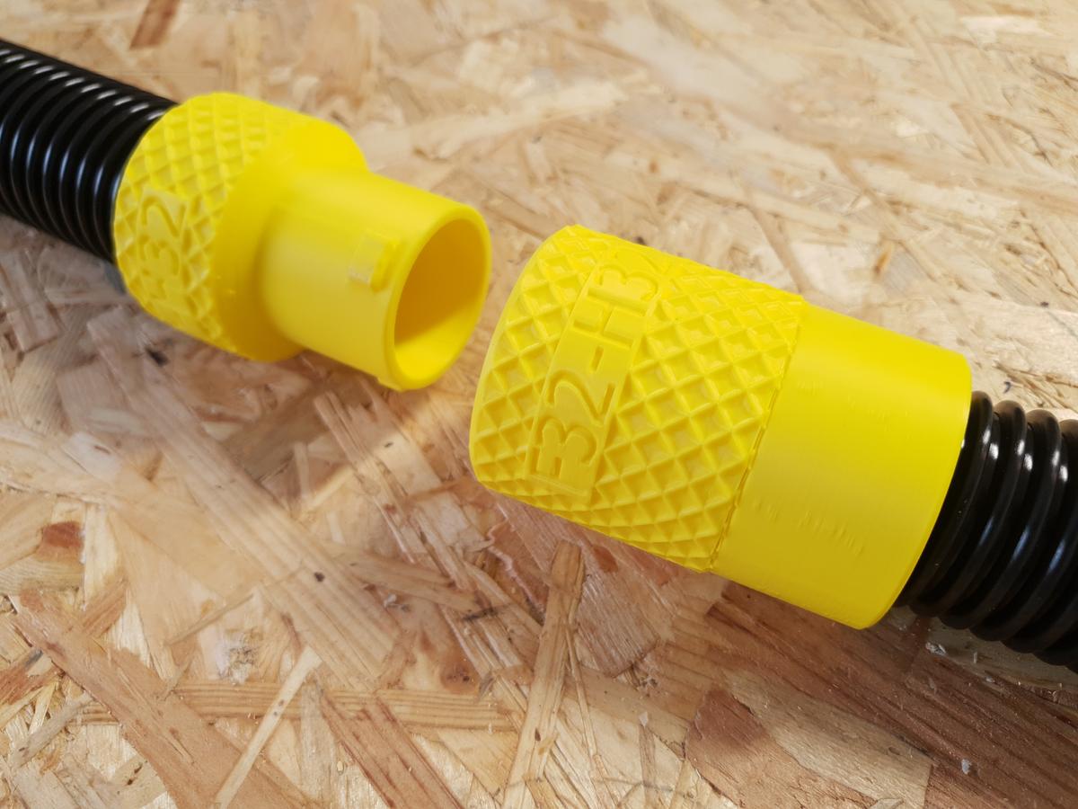 Der F32-H32 ist die grundlegende Verbindung, mit der du deine Werkstatt im Handumdrehen "osVAC ready" machst. Schraube den Adapter einfach und ohne Werkzeug auf deinen handelsüblichen Staubsaugerschlauch – fertig! Alles, was du brauchst, ist ein Standard-Staubsaugerschlauch mit 32 mm Innendurchmesser und ca. 40 mm Außendurchmesser, den du nahezu überall finden kannst.